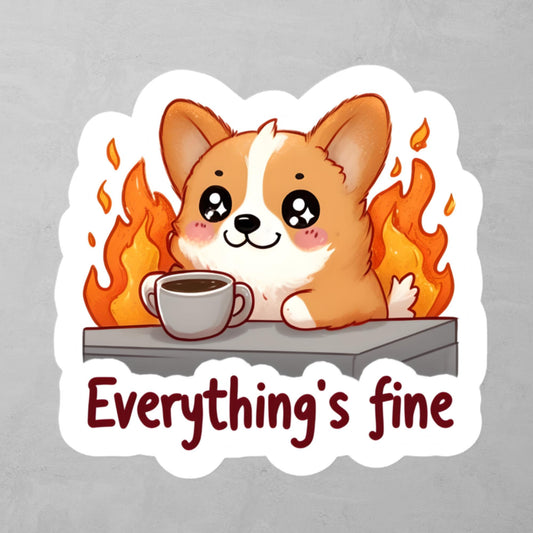 Everything's Fine - Adorable Corgi At Desk on Fire Sticker