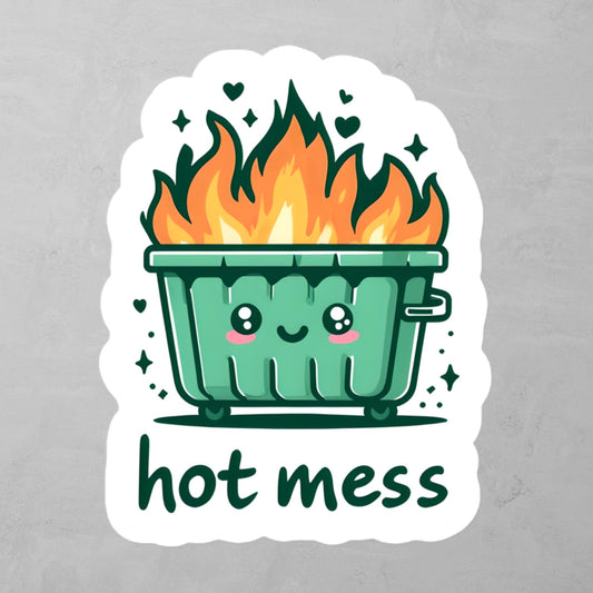 Hot Mess - Cartoon Dumpster On Fire Sticker