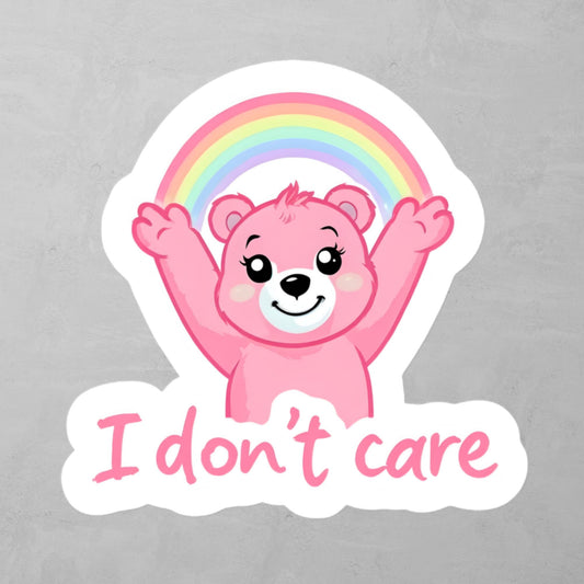 I Don't Care - Cheerful Pink Bear with Rainbow Sticker