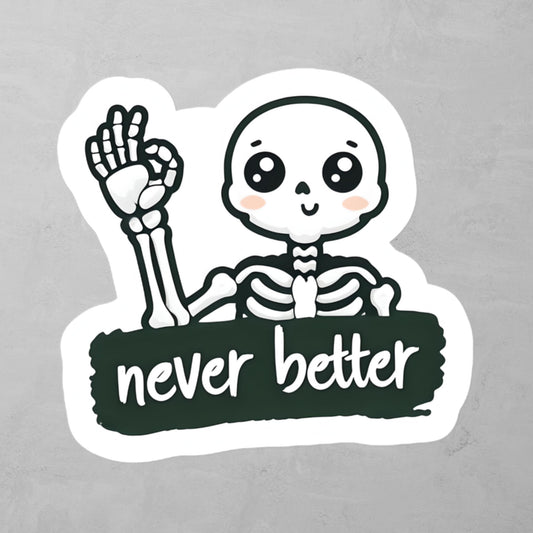 Never Better - Playful Cartoon Skeleton With OK Sign Sticker