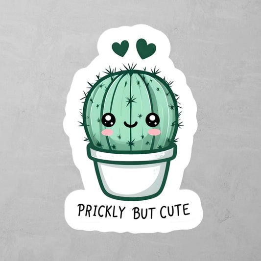 Prickly But Cute - Cute Green Cactus With Hearts Sticker