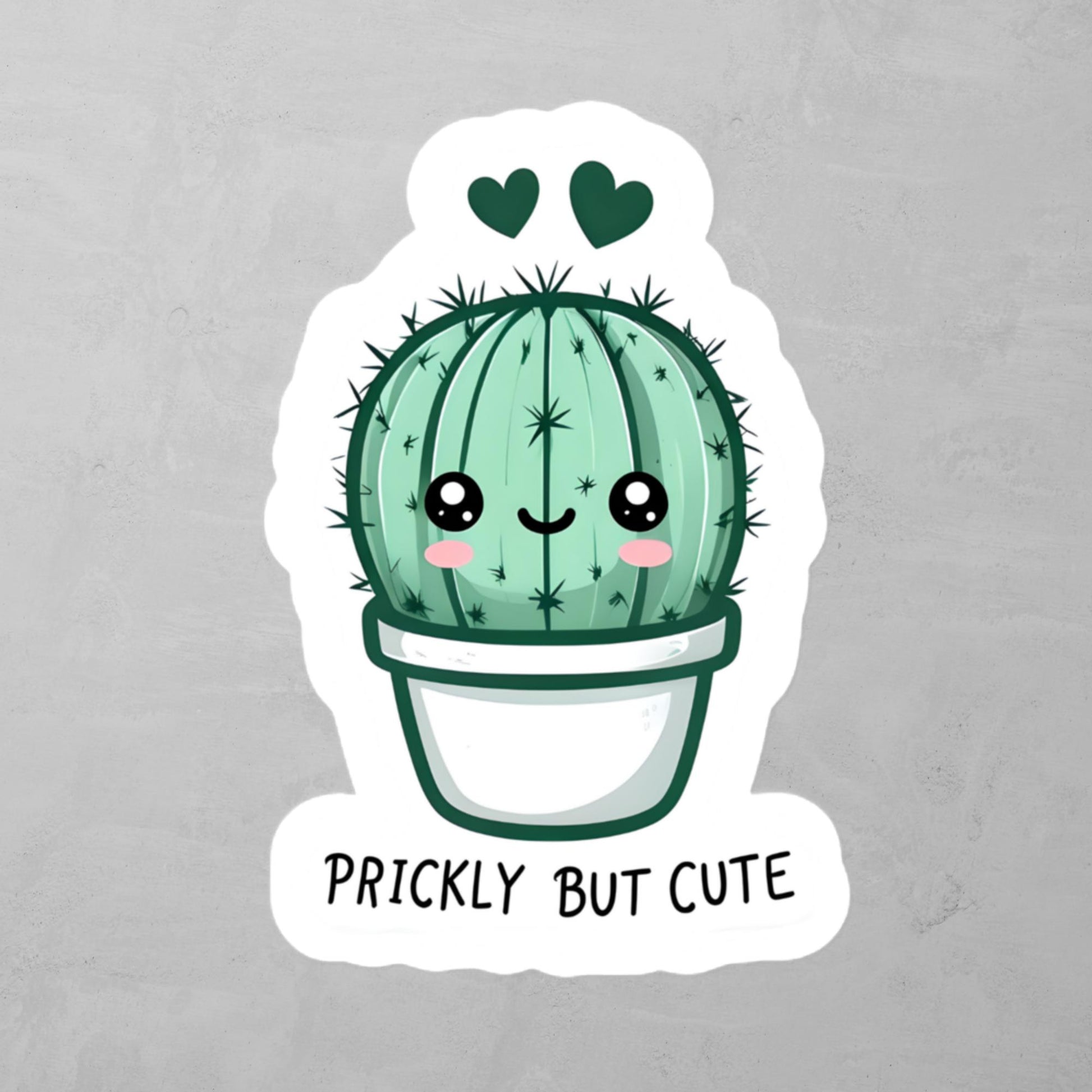 Prickly But Cute - Cute Green Cactus With Hearts Sticker